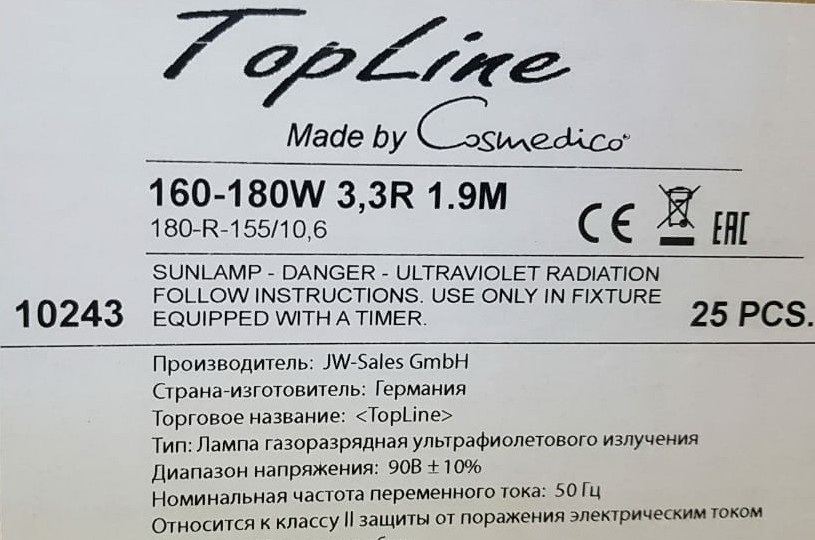 Лампы для соляриев 180w TopLine Cosmedico 2.0m 3.6%, Plus Vitamin D DELUXE 36R 180W от 2190 руб.(пр-во: Германия)
